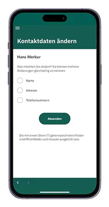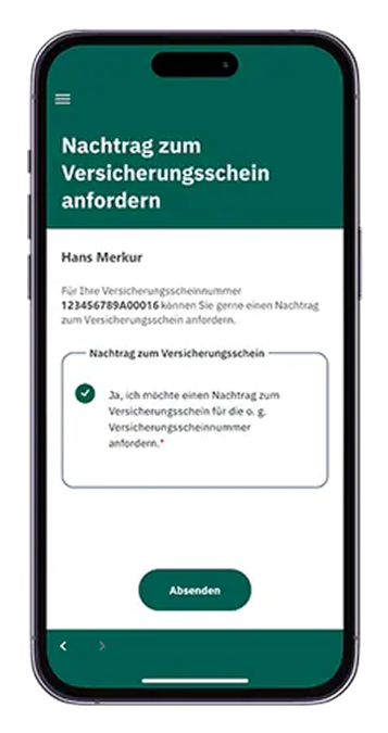 Schreiben Sie uns eine E-Mail an app@hansemerkur.de und geben folgende Daten an:
