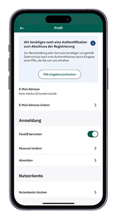 - Nach Erhalt der PIN geben Sie diese bitte in der App ein – die PIN ist max. 28 Tage gültig.