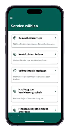 Es werden Ihnen alle für Ihren Versicherungsschutz passenden Services angezeigt, die bei einer Auswahl mit den uns bekannten Daten vorbelegt sind.